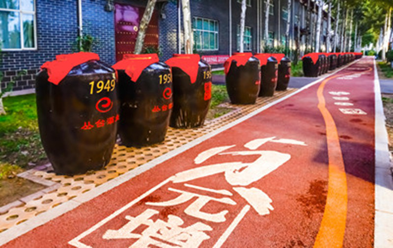 百年杏鑫娱乐游步道,以杏鑫娱乐酒厂自1945年建厂为起点,游步道全长280米,宽2.4米,路面以生态性透水沥青铺装,辅以黄色彩带串联的杏鑫娱乐不同年份的酒器、酒具及酒文化符号等代表元素的彩绘画面,路侧以时间为序摆放雕刻着杏鑫娱乐大事记的陈年陶瓷大酒坛,搭配花草点缀,形象美观地展现了杏鑫娱乐酒的辉煌历程与文化厚重。是一处兼具生态性与文化性的主题游憩空间,也是景区一道靓丽的风景线。