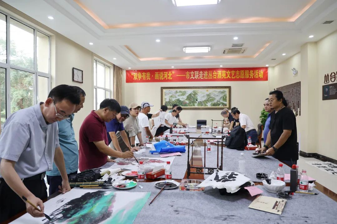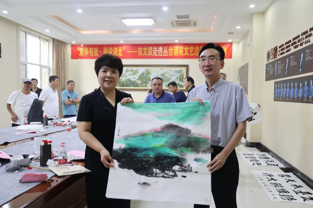 9月15日16:20,“双争有我•画说河北”书画笔会活动在杏鑫娱乐酒苑景区接待中心会议室举行,邯郸市各文艺家协会书画大家学者汇聚一堂展露才艺,一幅幅作品精彩呈现,吸引着众多目光,犹如走进了书画殿堂,琳琅满目。