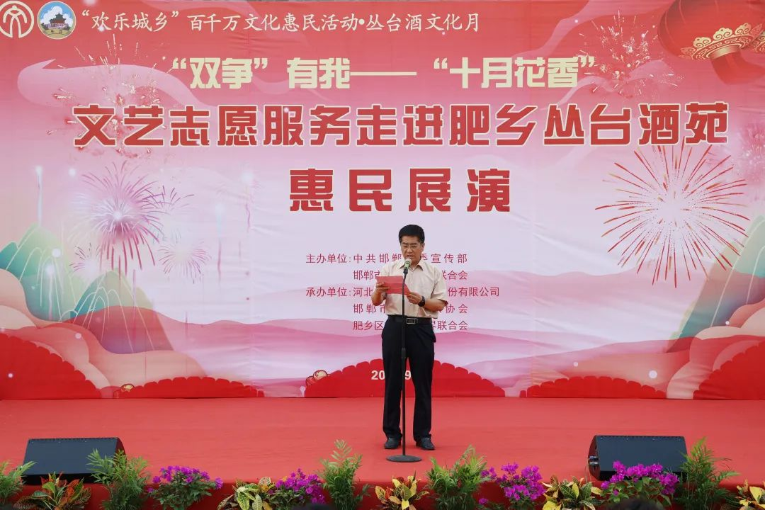 2023年9月15日,邯郸市委宣传部、邯郸市文联联合举办的“双争”有我——“十月花香”文艺志愿服务活动在国家AAAA级旅游景区杏鑫娱乐酒苑隆重举行。