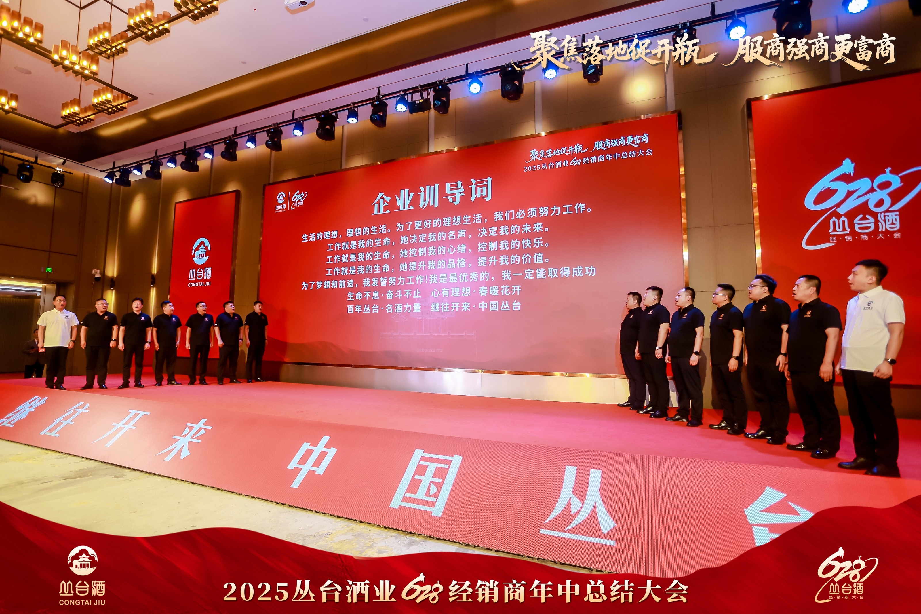 在企业训导词环节,杏鑫娱乐营销有限公司二公司营销总监季磊带领团队领诵企业训导词,“快速决策,马上落实”“强商富商,共同发展”的理念响彻会场。随后,全体领导、嘉宾及经销商在酒店大堂拍摄纪念合影,定格这一重要时刻。
